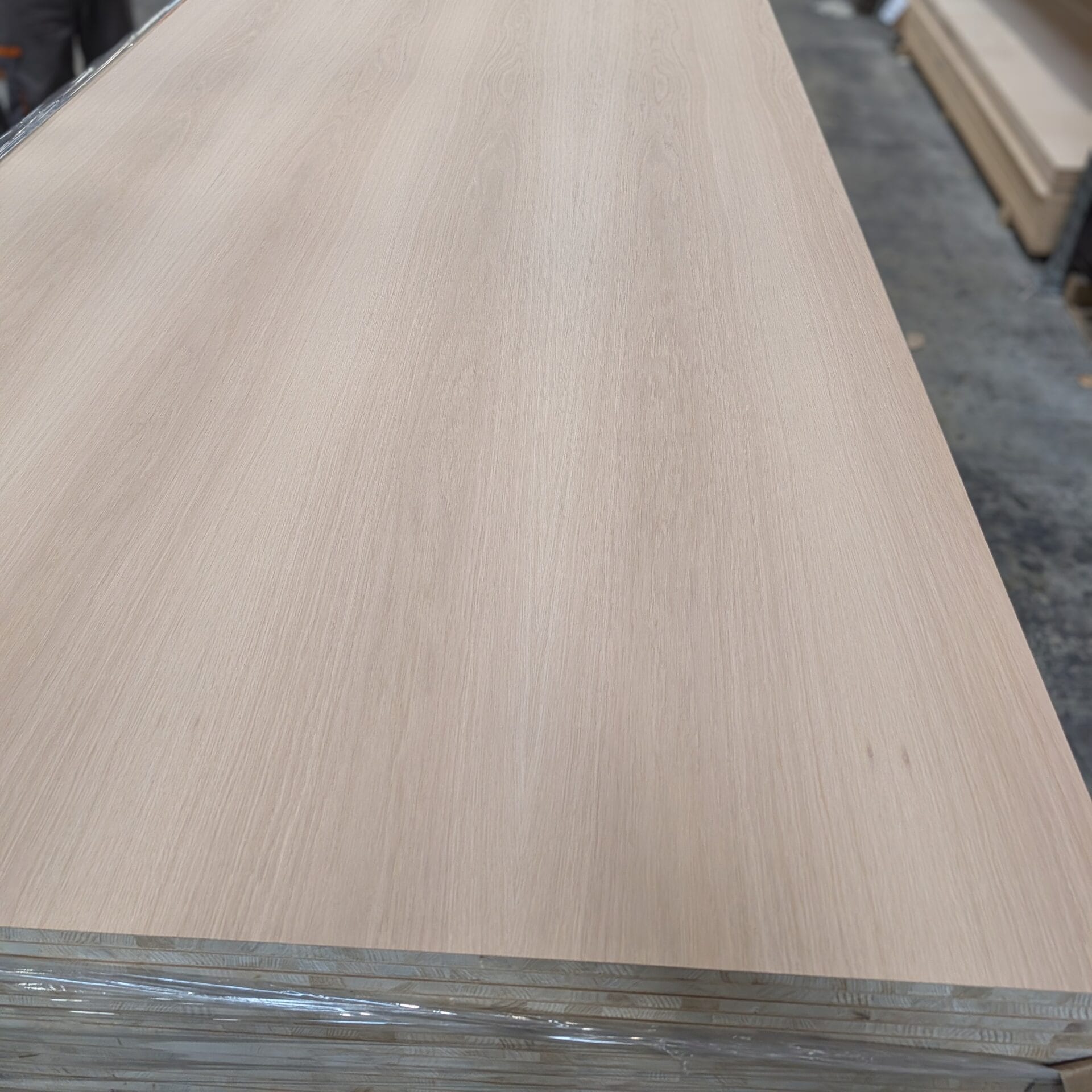 • Panel in 5 straturi Furniruit cu furnir estetic esenta de stejar de 0.5mm grosime, cu miez simplu de rasinoase si subfurnir rasinos.