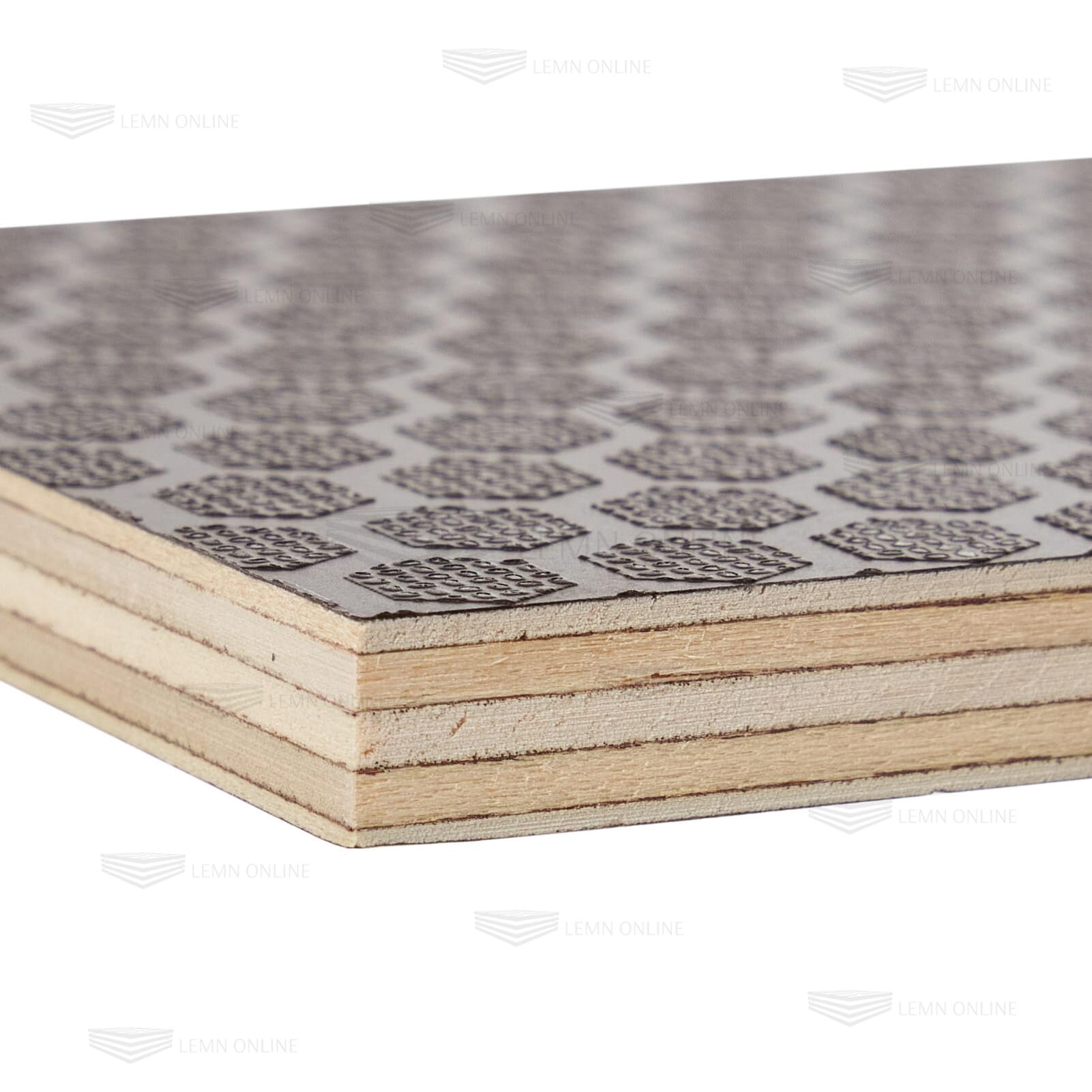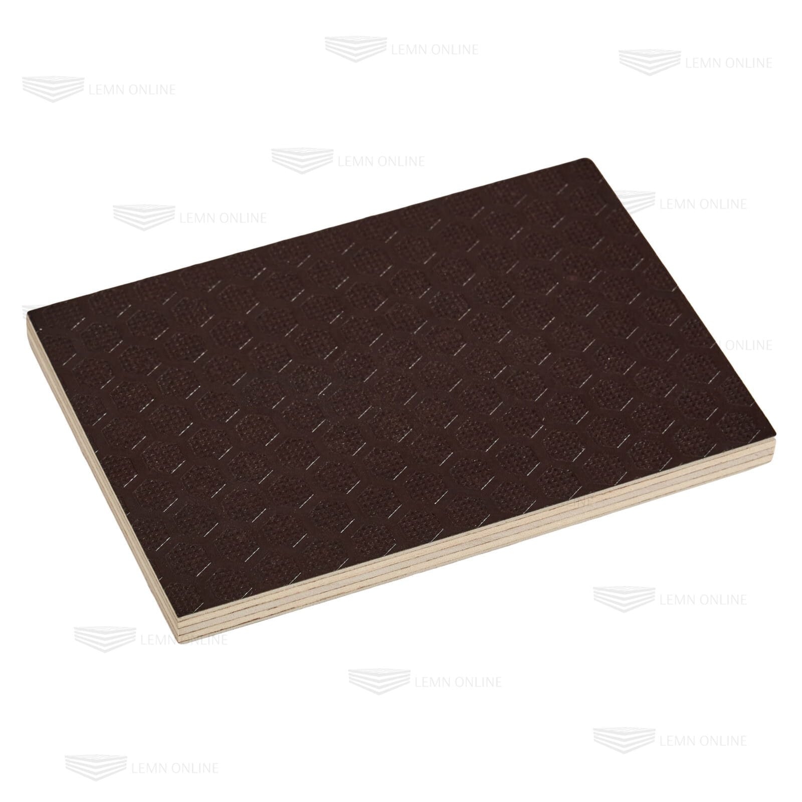 - ambele fete sunt acoperite cu film fenolic de culoare maro, 240 g/m2 aprenta Hexa pe față antiderapantă si 120 g/m2 pe fața netedă (spatele plăcii)